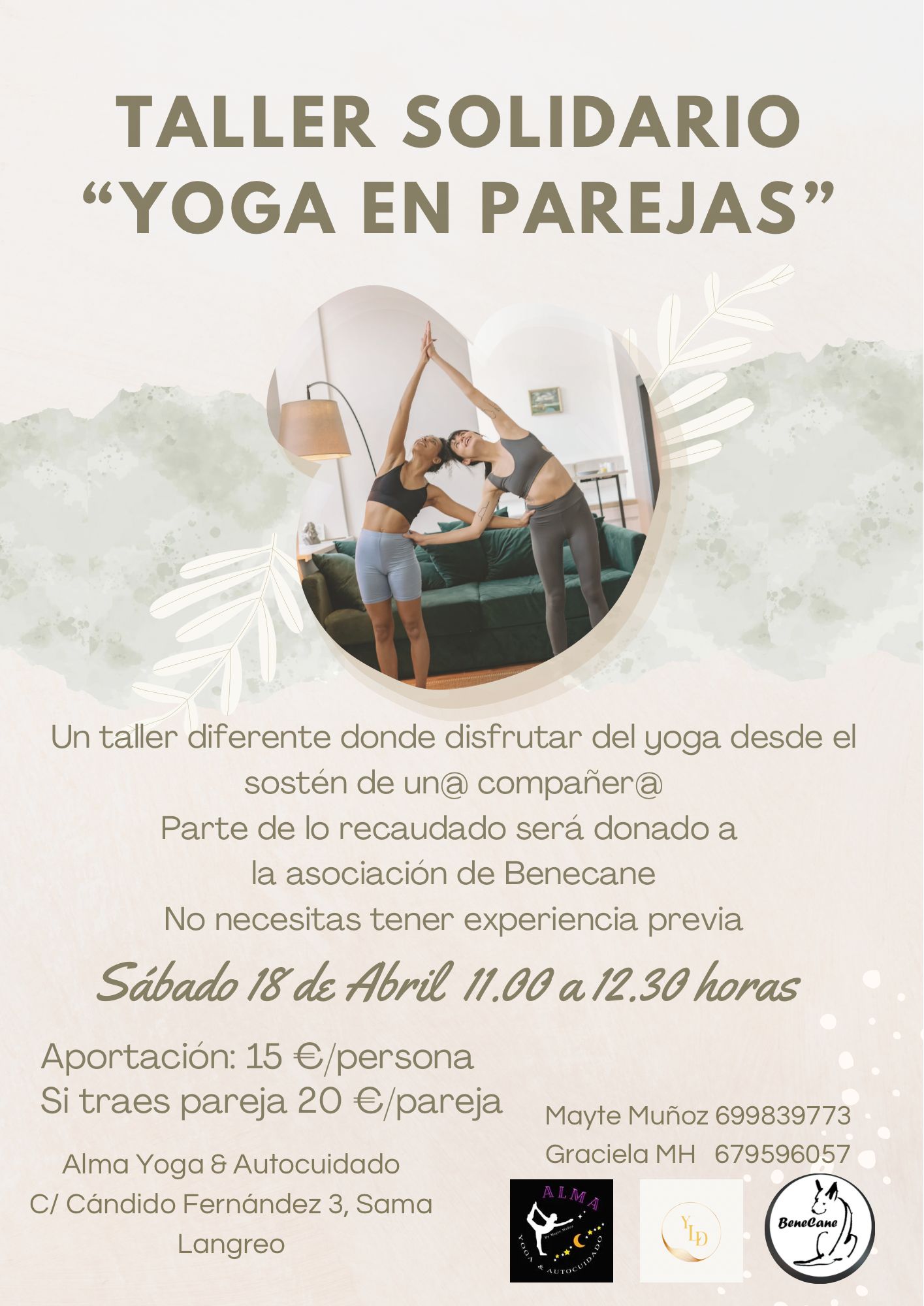 Estaremos la mañana del sábado disfrutando de un yoga compartido en parejas.